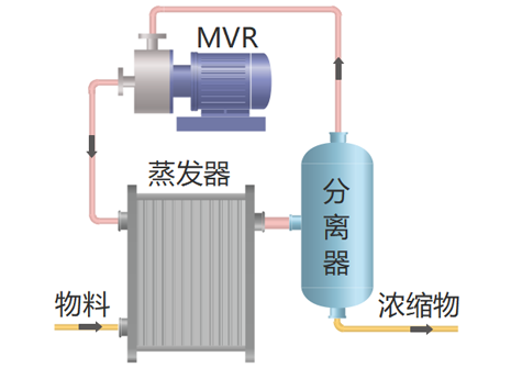 MVR蒸汽壓縮機(jī)是此蒸發(fā)裝置中核心設(shè)備。主要的參數(shù)有流量,進(jìn)、出口溫度(溫升),電流等。蒸汽壓縮機(jī)也根據(jù)溫升、蒸汽流量不同,有多種選擇,如離心風(fēng)機(jī)、單機(jī)高速離心機(jī)、容積式羅茨壓縮機(jī)等。