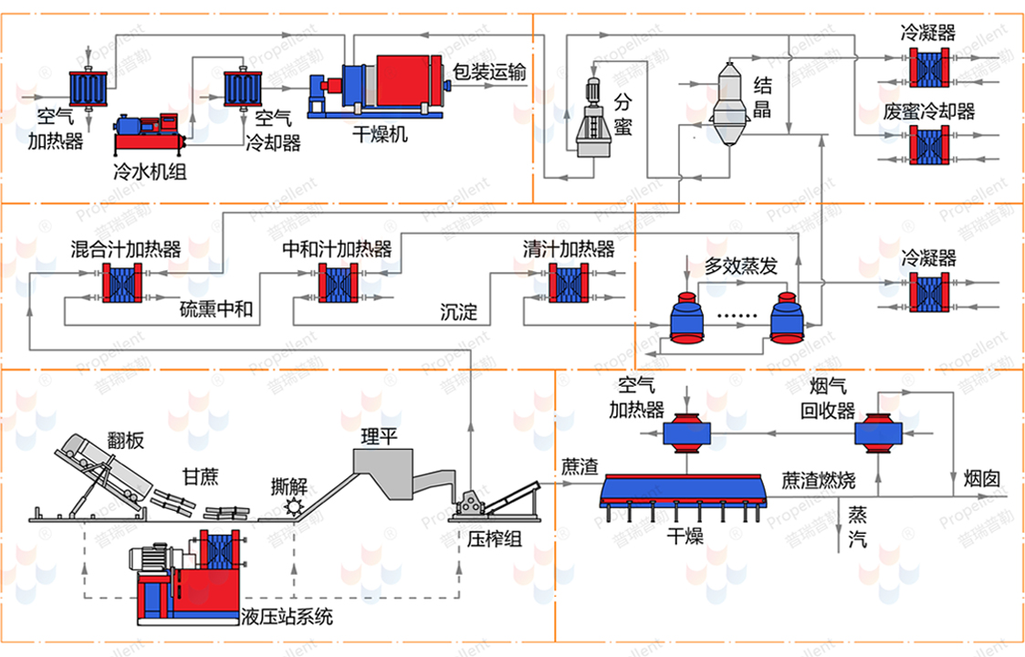 混合汁加熱、中和汁加熱采用寬流道板式換熱器,解決蔗汁中纖維、顆粒等雜質的通過性問題,可配套自清潔智能熱交換系統。